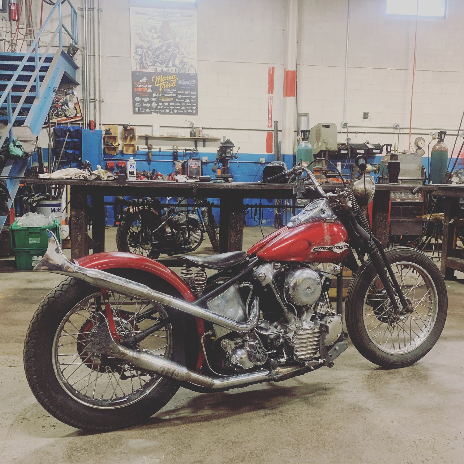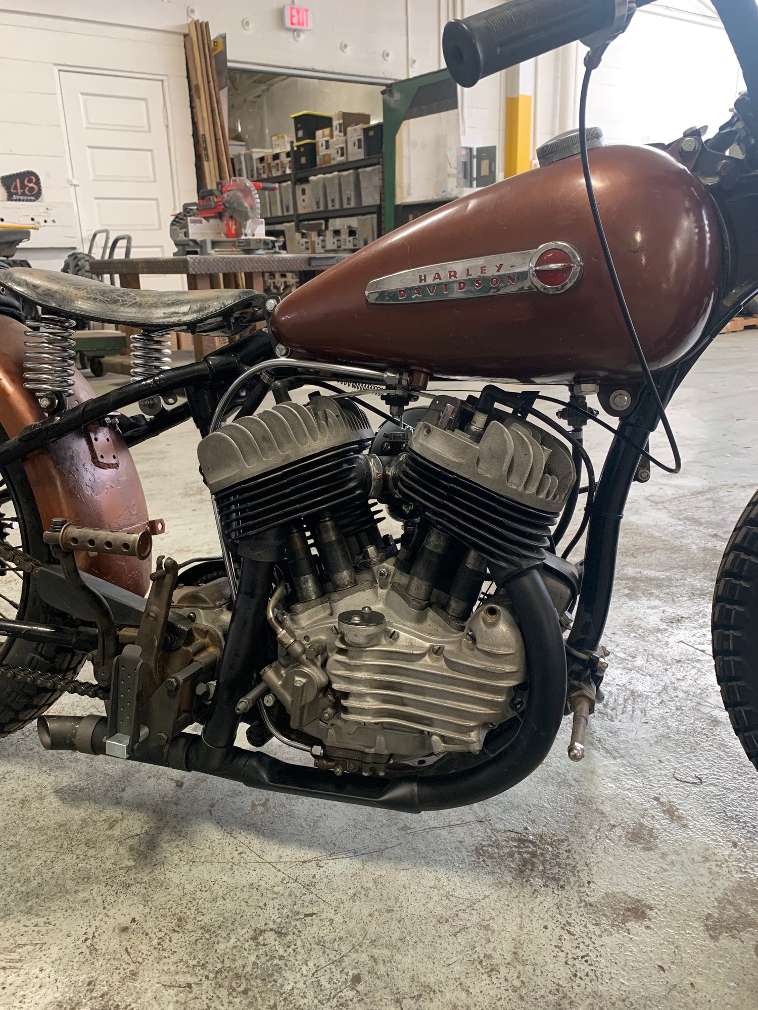 We specialize in vintage Harley-Davidson motorcycles. Panheads, Knuckleheads, Shovelheads, WR's or BTSV's. Race, Street, Ice, Chopper or Stocker. We love them all! Feel free to reach out if you want a bike built or if you have any parts forsale., We are always looking and there is always somthing on the lift being built. Email: jrfabweld@gmail.com